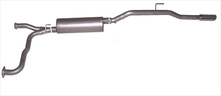 Cat-Back Performance Exhaust System Single Straight Rear. Gibson Single Swept Side Exhaust is perfect for improved acceleration maximum hill climbing towing and passing Power. This is our best performing Exhaust System. Exits behind the rear tire. Quieter in the cab than any other Performance Exhaust. Dyno test results show it makes maximum torque and horse Power at low-end (1800 to 3000 RPM). Horse Power gains average 10-15 and 15-20lb-ft of increase torque. Hassle free bolt-on installation with professional looking results. No welding required. Features