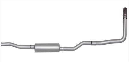 Cat-Back Performance Exhaust System Single Side. Gibson Single Swept Side Exhaust is perfect for improved acceleration maximum hill climbing towing and passing Power. This is our best performing Exhaust System. Exits behind the rear tire. Quieter in the cab than any other Performance Exhaust. Dyno test results show it makes maximum torque and horse Power at low-end (1800 to 3000 RPM). Horse Power gains average 10-15 and 15-20lb-ft of increase torque. Hassle free bolt-on installation with professional looking results. No welding required. Features- Tubing Size (2) 80-c - 2.50 in. aluminized mandrel bent tubing.