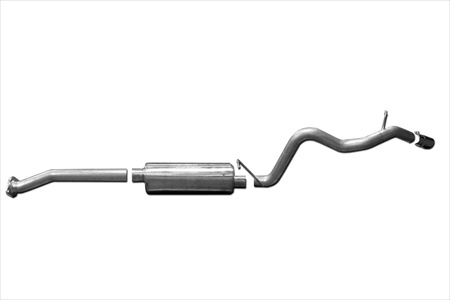Cat-Back Performance Exhaust System Single Side. Gibson Single Swept Side Exhaust is perfect for improved acceleration maximum hill climbing towing and passing Power. This is our best performing Exhaust System. Exits behind the rear tire. Quieter in the cab than any other Performance Exhaust. Dyno test results show it makes maximum torque and horse Power at low-end (1800 to 3000 RPM). Horse Power gains average 10-15 and 15-20lb-ft of increase torque. Hassle free bolt-on installation with professional looking results. No welding required. Features