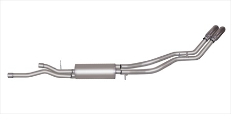 If you're looking to add a little style to your Truck or SUV and want to keep the exhaust from affecting your tow trailer this Dual Cat back Exhaust System is for you exiting behind the rear tire for a look that sets your vehicle apart on the street or in the dirt. Hassle free bolt-on installation with professional looking results. No welding required. Gibson dual sport exhaust offers a powerful authoritative deep exhaust tone with no annoying noise inside the cab. Dyno tested to assure increased horsepower and produce more torque. Average horsepower gains are 10-15 and 15-20lb-ft of increase torque. Features