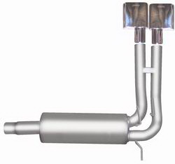 Cat-Back Performance Exhaust System Super Truck. Your truck deserves a super serious Performance Exhaust System. Gibson Super Truck Exhaust System offers a loud deep powerful sound with dual tailpipes that exit in front of the rear tires with Stainless Tip. You can expect a race rumble tone with improved acceleration and increased horsepower gains. Typical dyno tested horsepower gains average 10-15 and 15-20lbs.-ft. of increased torque. Hassle free bolt-on installation. No welding required. Not recommended for towing. Noise level may exceed 95-decibel standard. Features