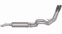 Cat-Back Performance Exhaust System Dual Sport. If you are looking to add a little style to your Truck or SUV and want to keep the exhaust from affecting your tow trailer this Dual Cat back Exhaust System is for you exiting behind the rear tire for a look that sets your vehicle apart on the street or in the dirt. Hassle free bolt-on installation with professional looking results. No welding required. Gibson dual sport exhaust offers a powerful authoritative deep exhaust tone with no annoying noise inside the cab. Dyno tested to assure increased horsepower and produce more torque. Average horsepower gains are 10-15 and 15-20lbs.-ft. of increase torque. Features